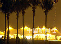 海南島博鰲椰林邊的中國最大膜結(jié)構(gòu)建筑燈火璀璨,這里二月舉行亞洲論壇之后,每天吸引上萬人慕名前來觀光。為維護(hù)小漁村的自然環(huán)境,三月開始限制參觀人數(shù)。中新社記者 賈國榮 攝