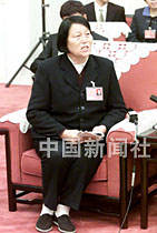 全國人大代表申紀(jì)蘭是唯一從第一屆至第九屆連任的代表,十三日她在山西代表團(tuán)會議上,向參加會議的李鵬委員長介紹山西農(nóng)村生活的發(fā)展變化。中新社記者 毛建軍 攝