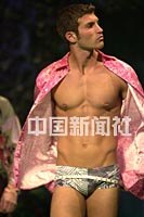 香港太古廣場13日舉辦2001年春夏時裝展,模特展示匯集名牌的最新潮流服飾。中新社傳真洪少葵攝