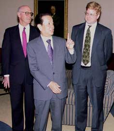 圖文:錢其琛會見美國工商金融界人士 2001年3月20日 08:08 ![]() 中新網(wǎng)紐約3月19日消息(記者陳建)美國東部時間19日中午,中國國務(wù)院副總理錢其琛在紐約會見了美國商會企業(yè)家代表。他告訴大家,自己將于本月二十一日訪問華盛頓,并在那里會晤美國總統(tǒng)布什、國務(wù)卿鮑威爾等政要。他希望中美雙方共同努力,為雙邊經(jīng)貿(mào)關(guān)系進一步發(fā)展創(chuàng)造更好的環(huán)境。 相關(guān)報道:特稿:磨合中美關(guān)系 錢其琛開始訪美 相關(guān)報道:紐約華人華僑歡迎錢其琛副總理訪美 相關(guān)報道:圖:錢其琛赴美 相關(guān)報道:錢其琛說布什新政府已與中國有合作 相關(guān)報道:國務(wù)院副總理錢其琛離京前往美國訪問 相關(guān)報道:錢其琛訪美有利于推動中美關(guān)系向前發(fā)展 |