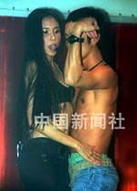 性感歌后莫文蔚19日晚在香港中環(huán)一家的士高內(nèi)與歌迷聚會,并在臺上與舞蹈員大跳貼身舞,演繹《幻聽》一曲。中新社傳真 王順 攝