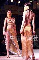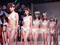 ![]() 在上海舉行的第六屆“中國國際內(nèi)衣、沙灘裝及輔料展覽會”,向人們演繹了內(nèi)衣流行趨勢,圖為“黃金時代”主題。中新社記者 潘索菲 攝