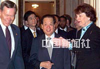 圖:錢其琛會見美國國會議員 2001年3月23日 09:48 ![]() 美東時間二十二日早晨,中國國務院副總理錢其琛在華盛頓國會山會見了美國國會議員。圖為參議員克雷格·托馬斯(左)、戴安娜·范斯坦(右)迎接錢副總理。中新社圖 胡啟華 攝 |
