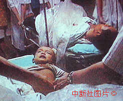 圖:湯志華殘害親子 2001年3月23日 17:07 ![]() 四川農(nóng)民、“法輪功”修煉者湯志華迷信所謂“世界末日”的說(shuō)教,1999年8月11日凌晨3點(diǎn)多鐘,竟用菜刀將其兩歲多的兒子的生殖器割下,然后又自殘。經(jīng)醫(yī)院搶救,湯志華父子的病情已基本穩(wěn)定。圖為搶救手術(shù)現(xiàn)場(chǎng)。 |
