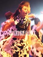 2000年中國歌曲排行榜頒獎(jiǎng)晚會,二十三日晚在頒獎(jiǎng)裝飾一新的首都體育館舉行,并評出中國十大金曲。 圖為晚會載歌載舞的熱鬧場面。 中新社記者 錢興強(qiáng) 攝