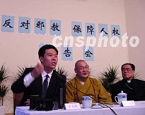 圖文:中國反邪教協(xié)會代表團(tuán)訪法 2001年3月29日 10:30 ![]() 圖為:圖為司馬南在作報告 中新社傳真 蔚中攝 中國反邪教協(xié)會代表團(tuán)三月二十四日下午在巴黎作“反對邪教保障人權(quán)”專題報告會,揭露“法輪功”反人權(quán)、反社會、反科學(xué)的邪惡本質(zhì),受到中國旅法留學(xué)生的歡迎。 中國反邪教協(xié)會代表團(tuán)由中國天主教愛國會主席、中國反邪教協(xié)會副理事長傅鐵山主教,中國佛教協(xié)會副會長、中國反邪教協(xié)會副理事長圣輝法師,中國反邪教代表團(tuán)團(tuán)長、中國科技館館長王渝生教授和中國反邪教協(xié)會理事、中國科普作家協(xié)會副理事長司馬南等組成。 |