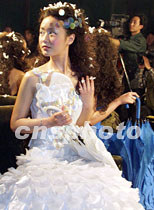 香港著名服裝設(shè)計(jì)師尹泰尉先生,一日晚在京舉行個(gè)人專(zhuān)場(chǎng)時(shí)裝發(fā)布會(huì),特邀參加此次展示的少女模特,為展示帶來(lái)青春浪漫的氣氛。中新社記者 錢(qián)興強(qiáng) 攝