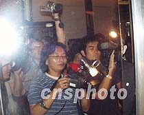 美國駐華使館原定四月三日晚十時在?谖娜A大酒店舉行記者招待會,延至四日凌晨一時四十分宣布取消。圖為美國駐華大使館武官及使領(lǐng)館人員在文華大酒店電梯口出現(xiàn)時,被現(xiàn)場中外記者追訪。中新社記者 莫成雄 攝