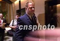 美國(guó)駐華使館軍官八日凌晨一時(shí)許與美國(guó)軍用偵察機(jī)機(jī)組人員第三次見面后,首批返回?谖娜A酒店。中新社記者 賈國(guó)榮 攝