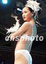 九日晚,在北京嘉里中心飯店舉行的“時尚大蓬車”內衣時裝秀,吸引了來自京城各處的觀眾,著名內衣品牌“黛安芬”展開中國市場的大型推廣活動。圖為名模趙俊模特展示內衣新款作品。中新社記者 錢興強 攝