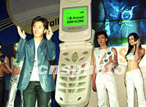 香港藝員鄭伊健9日在北京中國大飯店與模特兒同臺,為韓國三星新款雙屏幕移動電話走進(jìn)中國市場作宣傳。中新社記者 王瑤 攝