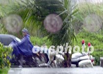 海南省十一日風(fēng)吹雨打中降溫十?dāng)z氏度,警方仍然加強(qiáng)?谑械难策墸@里此時(shí)是撞毀中國(guó)戰(zhàn)機(jī)的美軍用偵察機(jī)機(jī)組人員所在地。中新社記者 賈國(guó)榮 攝