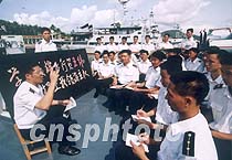 中國(guó)海南艦艇部隊(duì)官兵聽(tīng)取撞機(jī)事件情況 2001年4月12日 00:11 ![]()