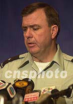 美國駐華使館武官席樂高準(zhǔn)將十一日晚十時四十分在海口文華大酒店新聞發(fā)布會上說,他已同中方見面并得到釋放機組人員的細(xì)節(jié)和具體要求,美方需要研究考慮。中新社記者 賈國榮 攝