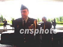 美國(guó)駐華使館武官席樂高準(zhǔn)將十二日凌晨秘密離開海口文華大酒店,送別美方機(jī)組人員后又回到酒店。中新社記者 莫成雄 攝