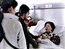 四月十一日,在美偵察機(jī)撞毀中國(guó)軍機(jī)事件中失蹤的中國(guó)飛行員王偉仍下落不明,專家預(yù)計(jì),王偉生還的可能越來(lái)越小。中國(guó)浙江省湖州民眾懷著對(duì)王偉的懷念和關(guān)切之情,紛紛到醫(yī)院看望王偉的父母。中新社圖
