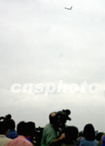 中外記者十二日凌晨七時許在中國海南省?谑忻捞m機(jī)場邊,遠(yuǎn)遠(yuǎn)地目擊搭載美國軍用偵察機(jī)機(jī)組人員的美專機(jī)起飛離境。中新社記者 賈國榮 攝