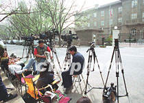 四月十八日,中美“關(guān)于美國軍用偵察機(jī)撞毀中國軍用飛機(jī)事件及相關(guān)問題的談判”開始在北京舉行。美國駐華大使館再次成為媒體關(guān)注的焦點(diǎn)。中新社圖 史利 攝