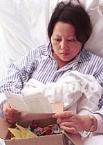 四月十八日上午,正在北京某醫(yī)院住院的英雄飛行員王偉的妻子阮國琴,收到了北京市海淀區(qū)成府小學(xué)一(1)班42名小學(xué)生寫來的一封慰問信和折疊的403只小紙鶴。這些小學(xué)生十分懷念王偉叔叔,祝愿阮國琴阿姨早日恢復(fù)健康。中新社圖 張全躍 攝