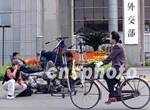 在北京外交部大樓舉行的中美談判,引起中外媒體記者的關(guān)注。在外交部門口擺開陣勢等著抓拍新聞的中外記者成為京城的一道風(fēng)景。中新社記者 滿會喬 攝