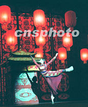 ![]() 由張藝謀執(zhí)導、中國芭蕾舞團演出的舞劇《大紅燈籠高高掛》二十六日晚在新落成的北京天橋劇場首次向新聞媒體亮相。圖為劇中三姨太由朱研扮演。中新社圖 史利 攝