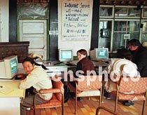 圖:拉薩“網(wǎng)吧”受外國(guó)游客的歡迎 2001年5月9日 20:29 ![]() 開設(shè)在拉薩八廓街咖啡店的“網(wǎng)吧”,很受外國(guó)游客的歡迎,每天有二十位左右客到這里上因特網(wǎng)。這個(gè)“網(wǎng)吧”是西藏第一家“網(wǎng)吧”,開張已有一年多時(shí)間。中新社圖 趙偉 攝