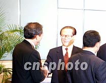 應(yīng)邀出席《財富》全球論壇香港年會的中國國家主席江澤民,8日下午在香港會展中心會見了與會的世界知名企業(yè)家和香港工商界代表。江澤民與代表一一親切握手、寒暄。中新社圖 張朔 攝