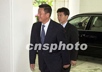 澳門特區(qū)行政長官何厚鏵五月九日出席香港特區(qū)行政長官董建華舉辦的歡迎江澤民主席的午宴。中新社傳真 任海霞 攝