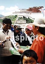 藏民在拉薩布達(dá)拉宮前的廣場上購買體育彩票。中新社記者 宋吉河 攝