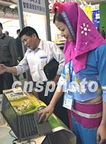 一名福建惠安女到北京參加五月國際科技博覽會,她對筆記本電腦演示的智能語音軟件產(chǎn)生了興趣。中新社記者 賈國榮 攝