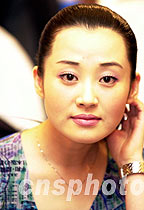 許晴為《笑傲江湖》電視劇在香港啟播簽約儀式做宣傳 2001年5月15日 10:03