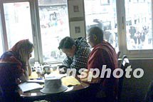 拉薩的一位喇嘛在八廓街的瑪吉阿米藏式酒吧向一位德國女孩學(xué)習(xí)英語,他則教德國女孩藏語。位于雪域高原的拉薩如今是一個國際化的城市,諸多的文化在這里交融。中新社記者 滿會喬 攝