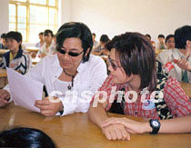 “星火行動”之粵北科教新紀元扶貧助學系列活動,五月十四日至十六日在韶關(guān)市拉開序幕!靶腔饜坌拇笫埂蓖踅、容祖兒來到始興縣澄江中學,與學生一起上物理課。中新社圖 馮昶 攝