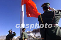 中國西藏拉薩布達拉宮廣場二十三日舉行隆重的升旗儀式,慶祝西藏和平解放五十周年。中新社記者 滿會喬 攝