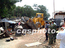 在珠海的一些部隊營區(qū)附近有不少“三無”人員搭建了違章建筑,種菜養(yǎng)豬,嚴(yán)重地污染了周邊的環(huán)境。珠海市有關(guān)部門二十四日采取聯(lián)合行動,拆除了唐家、炮臺山、駐澳部隊珠海港周邊的違章建筑,并將在這些地方進行綠化。中新社圖 冒韙、石頭 攝