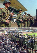 四川南充警方五月二十九日召開(kāi)公捕大會(huì),將五月在高坪區(qū)、順慶區(qū)進(jìn)行三起重大搶劫、殺人、強(qiáng)奸犯罪的犯罪嫌疑人劉天兵、劉天龍、廖雄、趙強(qiáng)四人公開(kāi)逮捕。