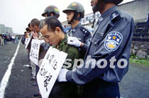中國安徽省繁昌縣公檢法部門三十日召開“公捕公判”大會。十一名犯罪分子在 六十余名荷槍實彈的警察和武警戰(zhàn)士押解下進入體育場并被公開宣判。中新社圖 吳芳 攝