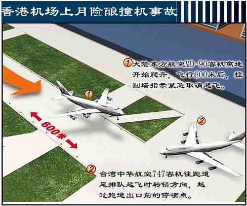 圖文:臺灣客機香港機場入錯道險撞大陸客機 2001年06月01日 10:22 ![]() 中新網(wǎng)香港6月1日消息:上個月二十三日,香港新機場險些發(fā)生撞機意外。臺灣中華航空一架正在跑道滑行的波音747-200飛機,誤闖跑道保護區(qū),差點與當時正在跑道加速起飛的大陸東方航空MD-90客機碰撞。香港民航處控制塔職員發(fā)覺,立即通知東航客機緊急煞停,及時化解一場危機。 香港民航處官員昨天指出,這場意外沒有人受傷,但是民航處已要求臺華航提出解釋。 據(jù)報道,這架東航編號MU512號客機原預定飛往寧波,當時在機場南跑道已高速滑行六百米,準備起飛;機師突然接獲控制塔通知,有一架華航客機的機頭相當接近跑道末端,要求東航客機緊急煞停。 東航客機煞停后,駛入滑行道,重新等候起飛。華航客機也被命令離開跑道支路,沿滑行道前行至跑道尾端,等待起飛。 雖然事件沒有乘客受傷,但東航機上乘客表示,當飛機緊急煞停時,機內(nèi)情況非常混亂,乘客尖叫,但幸好所有乘客都綁上安全帶,沒有人被拋出座位,只是有不少乘客在座位上向前沖。 編號CI641的臺灣華航客機,機上載有202名乘客,預定飛往曼谷。事發(fā)時,華航客機正在跑道末端的滑行道“排隊”等候駛入跑道;但因機頭轉錯方向,面向跑道。 香港民航處發(fā)言人承認,華航客機因轉錯方向,超越跑道的停頓點(跑道與滑行道之間的緩沖區(qū));而跑道另一端有一架東航客機駛近,控制塔人員為安全計,要求東航客機緊急煞停。 香港民航處發(fā)言人強調,即使華航客機機頭超越停頓點,過于接近跑道,但與跑道仍有七十公尺距離,與東航客機逾三千公尺距離;而東航客機屬較小型飛機,毋須滑行到跑道末端才起飛,就算控制塔不采取行動,也不會出現(xiàn)兩架客機碰撞的意外?刂扑蟾咚倩械娘w機取消起飛程序,是正常的預防事故措施。 民航處發(fā)言人表示,此次華航客機機頭超越跑道停頓點事件,過去很少發(fā)生;而塔臺人員并未向華航客機機師發(fā)出不正確指示,民航處已要求有關航空公司提交書面解釋。中華航空及東方航空公司香港辦事處均拒絕對事件評論,東方航空也拒絕透露客機上的乘客人數(shù)。據(jù)悉,當天東航使用的MD─90客機,可載客175人。