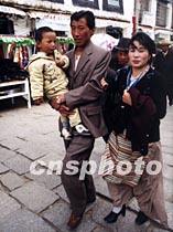 身著西服的丈夫和穿著時髦改良藏裝的妻子帶著孩子在拉薩八廓街上信步而行。西藏藏民的生活體現(xiàn)了傳統(tǒng)與現(xiàn)代的和諧統(tǒng)一。中新社記者 滿會喬 攝