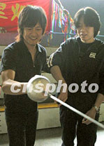 明星老狼、高明俊隨鳳凰衛(wèi)視“申奧萬里行”來到遼寧體育運(yùn)動(dòng)學(xué)校體操館,參加在這里舉辦的各種活動(dòng)。中新社圖 魏孝明 攝