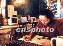 拉薩藏式酒吧里的讀書女孩