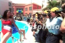 廣州房產(chǎn)開發(fā)商促銷新招百出,十七日,一個(gè)冠名“南洲名苑”的攝影大賽在該住宅小區(qū)舉行,主辦單位特邀一批靚女展示美姿,吸引了數(shù)百名攝影發(fā)燒友去拍攝。中新社記者 梁永強(qiáng) 攝