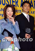 ![]() 香港演星劉德華29日在香港繽紛荷里活餐廳領(lǐng)取2001年港臺(tái)最受歡迎男演員獎(jiǎng)項(xiàng)時(shí),接受影迷贈(zèng)送的祝賀禮物。中新社記者 洪少葵 攝 ![]() 百視達(dá)公司主辦的“2001年港臺(tái)最受歡迎的男女演員”頒獎(jiǎng)禮,29日在香港繽紛荷里活餐廳舉行,主辦機(jī)構(gòu)將獎(jiǎng)項(xiàng)頒發(fā)予臺(tái)灣與香港觀(guān)眾投票選出的男女演員得獎(jiǎng)?wù)邉⒌氯A、鄭秀文。中新社記者 洪少葵 攝