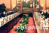 江澤民會見馬耳他總統(tǒng) 對中馬關(guān)系表示滿意 2001年07月02日 20:43 ![]() 國家主席江澤民二日在北京與馬耳他總統(tǒng)德馬爾科(右二)會談。中新社記者 滿會喬 攝