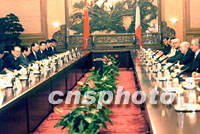 江澤民對發(fā)展中國與馬耳他關(guān)系提出三點希望 2001年07月02日 21:32 ![]() 國家主席江澤民二日在北京與馬耳他總統(tǒng)德馬爾科(右二)會談。中新社記者 滿會喬 攝