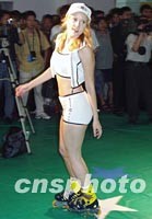圖:外籍模體在育用品博覽會(huì)上 2001年07月07日 17:36 ![]() 正在北京舉行的2001中國(guó)國(guó)際體育用品博覽會(huì)上,各參展商在展臺(tái)上推出商品展示。圖為曼奴服飾集團(tuán)展位上身穿運(yùn)動(dòng)服的外國(guó)模特。中新社記者 錢興強(qiáng) 攝