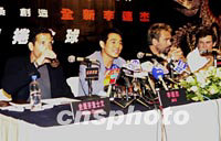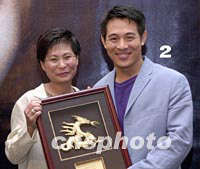 組圖:李連杰出席電影《猛龍戰(zhàn)警》亞洲區(qū)記者會 2001年07月07日 22:33 ![]() 國際武打影星李連杰7日在香港出席動作電影《猛龍戰(zhàn)警》亞洲區(qū)記者招待會!睹妄垜(zhàn)警》是他第三部荷李活制作的電影,該片香港區(qū)發(fā)行商特別在記者會上向李連杰致送紀(jì)念品。中新社傳真鄧慶樂攝 ![]() 荷李活電影《猛龍戰(zhàn)警》7日在香港舉行亞洲區(qū)記者招待會。影星李連杰、監(jiān)制及編劇洛比桑(右二)、及另一監(jiān)制史提芬查士文(左一)出席在記者會上。中新社傳真鄧慶樂攝