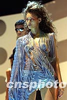 ![]() 香港10日舉辦「香港時(shí)裝節(jié)春夏系列2002」時(shí)裝表演,模特展示設(shè)計(jì)師最新服飾,盡顯美態(tài)。中新社圖 洪少葵 攝