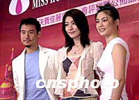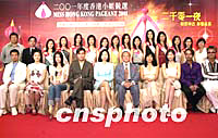 ![]() 2001年度香港小姐選美決賽十二位佳麗11日出席會晤大會評判記者會。圖為大會評判團及當晚表演歌星與眾佳麗聚集一堂。中新社圖 鄧慶樂 攝