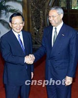 中美外長會談 鮑威爾重申堅持一個中國政策 2001年07月28日 17:21 ![]() 中國外交部長唐家璇二十八日在北京釣魚臺國賓館會見美國國務(wù)卿鮑威爾。中新社記者 滿會喬 攝 ![]() 中國外交部長唐家璇與美國國務(wù)卿鮑威爾二十八日在北京釣魚臺國賓館舉行會談。中新社記者 毛建軍 攝